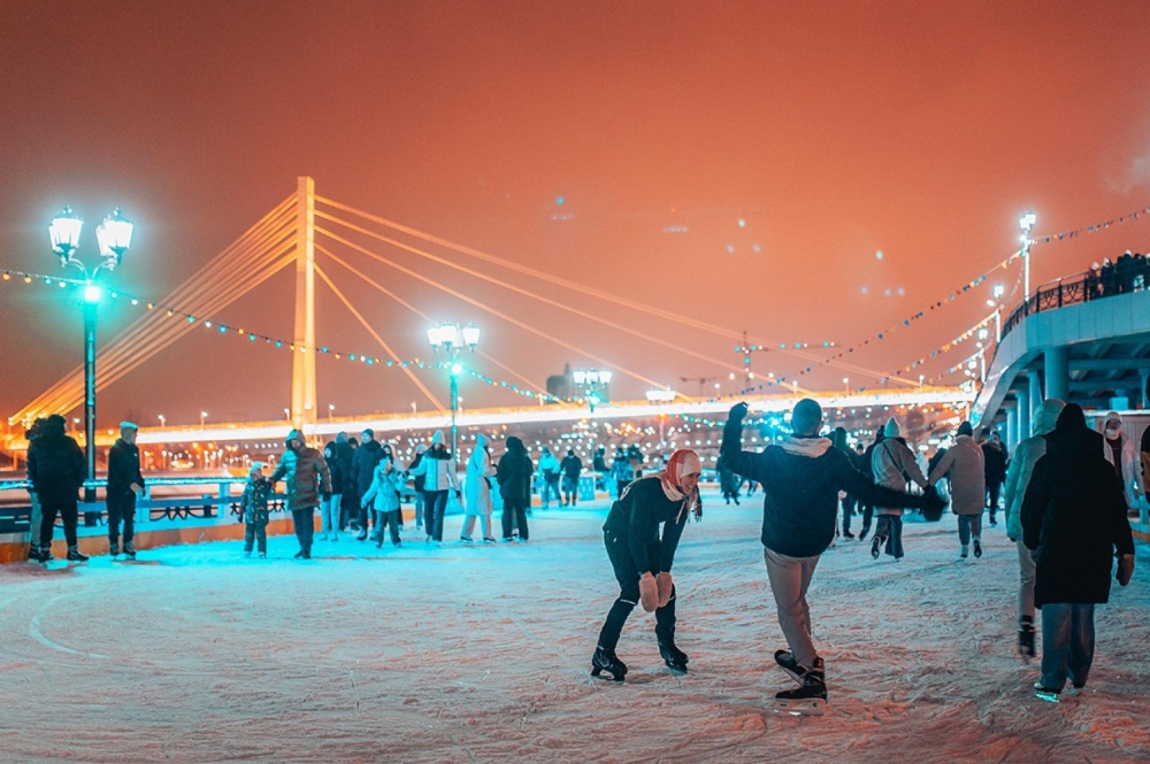 Зимой набережная преображается: каток с музыкальным сопровождением, ледяные горки с выкатом прямо к замерзшей Туре, праздничная иллюминация превращают прогулку в настоящую зимнюю сказку.
